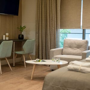 Among the categories of rooms available in Athens Platinum Rooms & Suites, four room types boast modern minimalistic aesthetics and earthy tones, creating relaxed surroundings. Each room is bright, spacious, and highly equipped with elegant furniture and modern amenities.