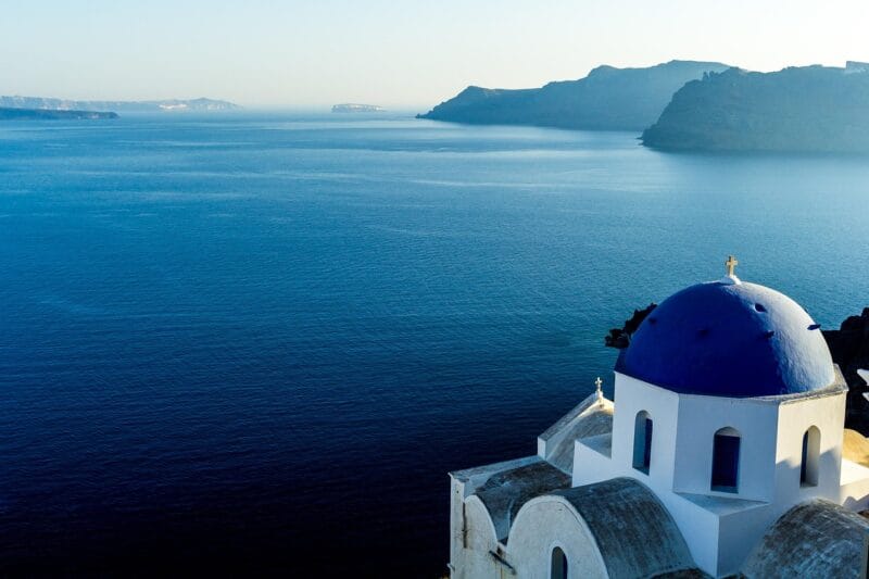 Setting off to Santorini by boat.